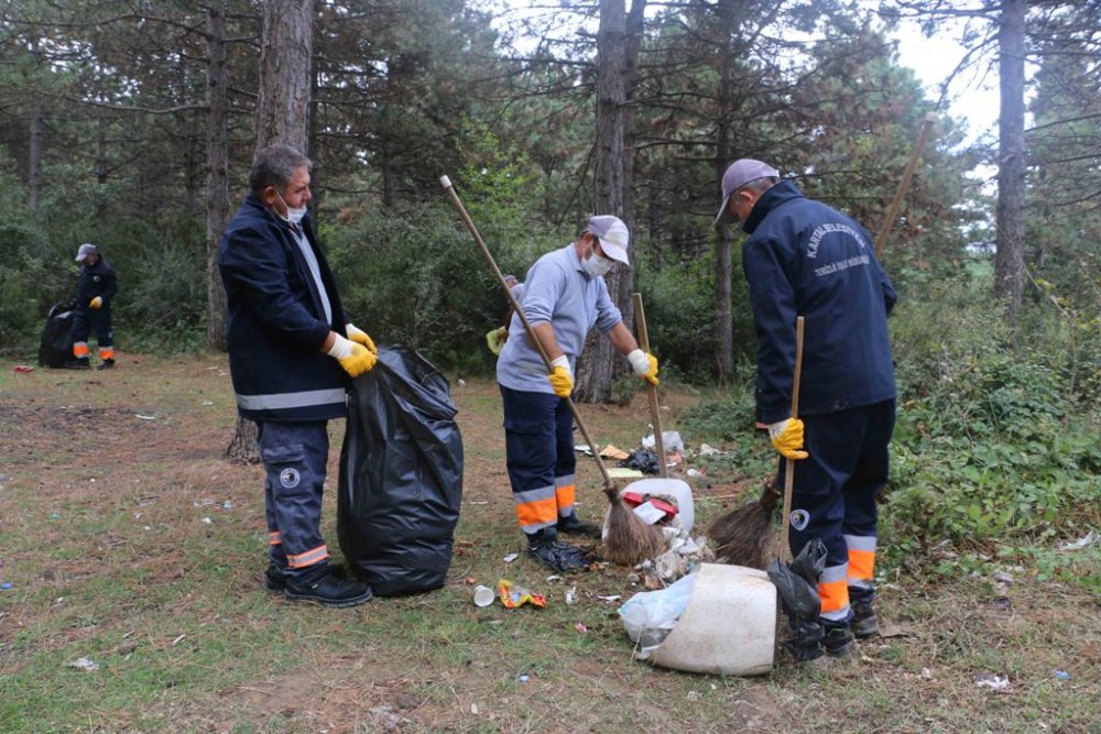 Aydos Ormanı’nda çöp toplama seferberliği başlatan Kartal Belediyesi Temizlik İşleri Müdürlüğü ekipleri,ormana gelişigüzel atılan; plastik, cam, ambalaj kutuları ve diğer katı atıklariçin hummalı bir çalışma başlatarak gün boyunca yüzlerce kilo çöp topladı.