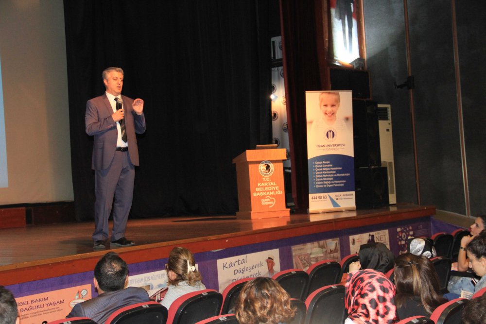 Seminere Kartal Belediyesi Sağlık İşleri Müdürü Nuray Sancaklı, Kartal Belediyesi Veteriner İşleri Müdürü Mustafa Çoban ve çok sayıda Kartallı ebeveyn katıldı. Doç. Dr. Adnan Ayaz ( çocuk Nörolojisi), Psk. Emel Güler ( Çocuk ve Ergen Psikolojisi)’in konuşmacı olarak katıldığı seminerde; çocuklarda konuşma bozuklukları, kekemeliğin sebepleri, tedavisi, konuşma bozukluğu olan çocuklara yaklaşım, kekemeliğin psikolojik sebepleri, ailelere düşen sebepler gibi birçok konu ele alındı. Seminerin ardından çocukları ile ilgili sorun yaşayan aileler konuşmacılara soru sordu. Soru cevap bölümünün ardından konuşmacılara teşekkür eden Nuray Sancaklı, “Kartal Belediye Başkanı op. Dr. Altınok Öz’ün öncülüğünde sağlık konusunda seminerler vermeye devam edeceğiz.” dedi. Nuray Sancaklı ve Mustafa Çoban, Kartal Belediye Başkanı Op. Dr. Altınok Öz adına konuşmacılara çiçek takdim etti.